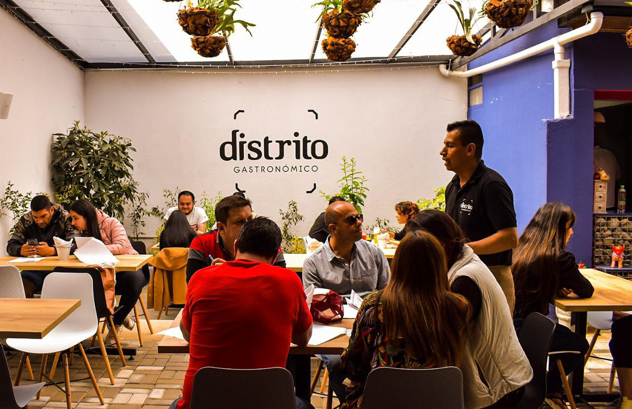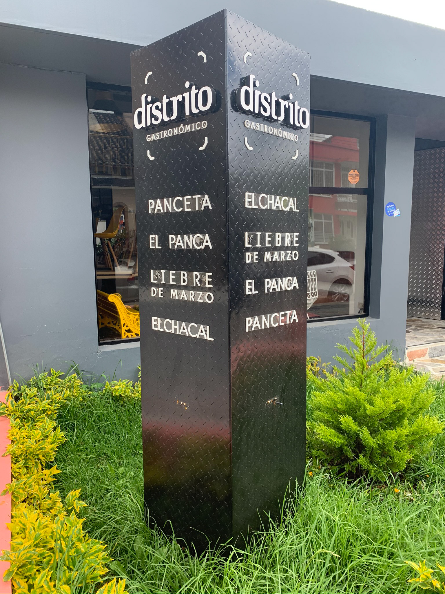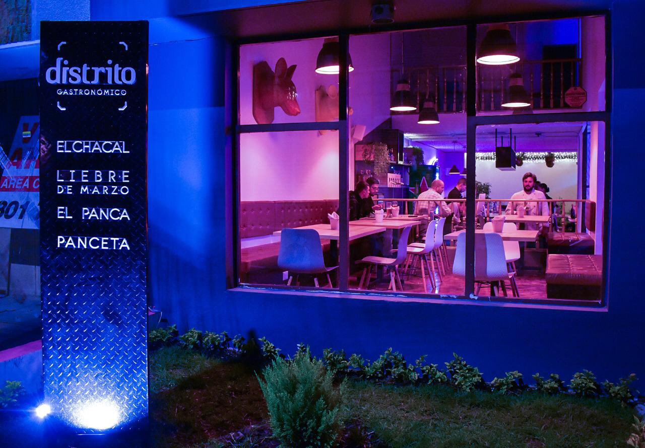 Proyecto de Identidad Visual Distrito Gastronómico / Aplicaciones en papelería y ambientación gráfica / Diseño y elaboración de aviso exterior tipo tótem / Año: 2019