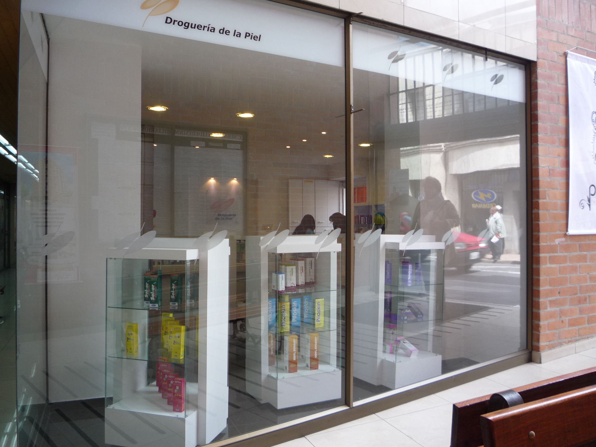 Proyecto de Actualización Imagen Gráfica Droguería de la Piel / Aplicación de logotipo en Interiores y Exteriores Avisos / Desarrollo de Mobiliário pára exhibición