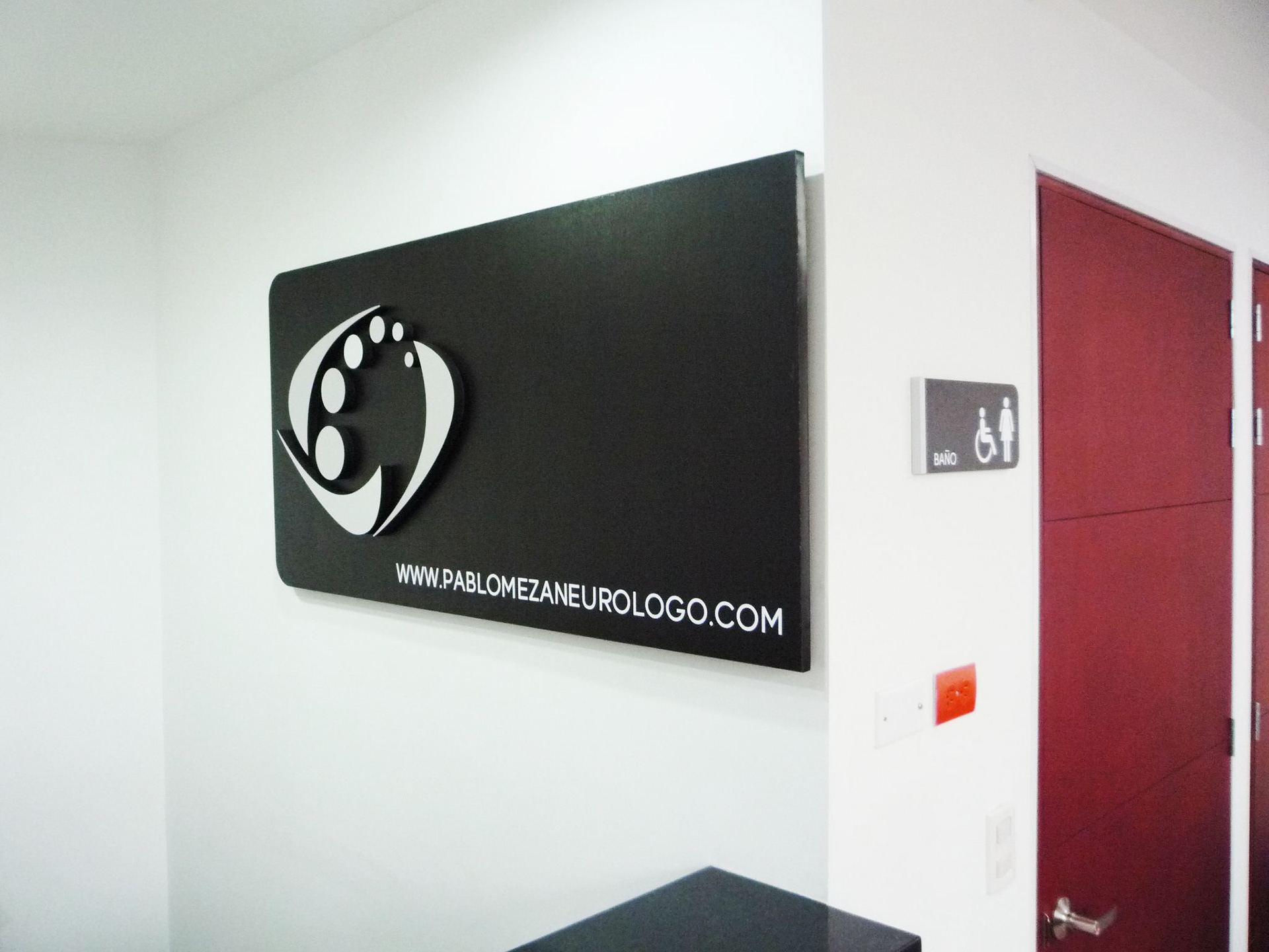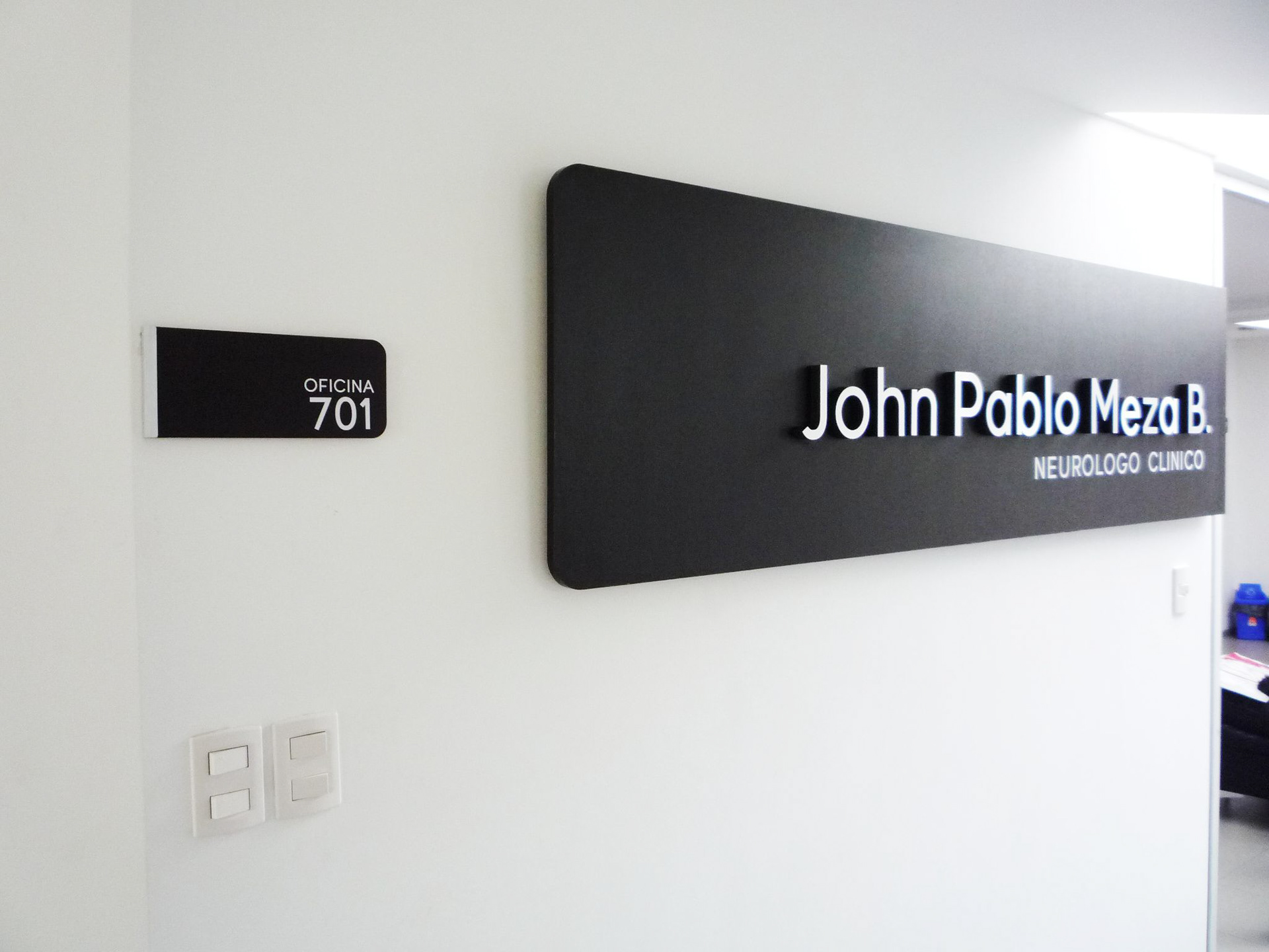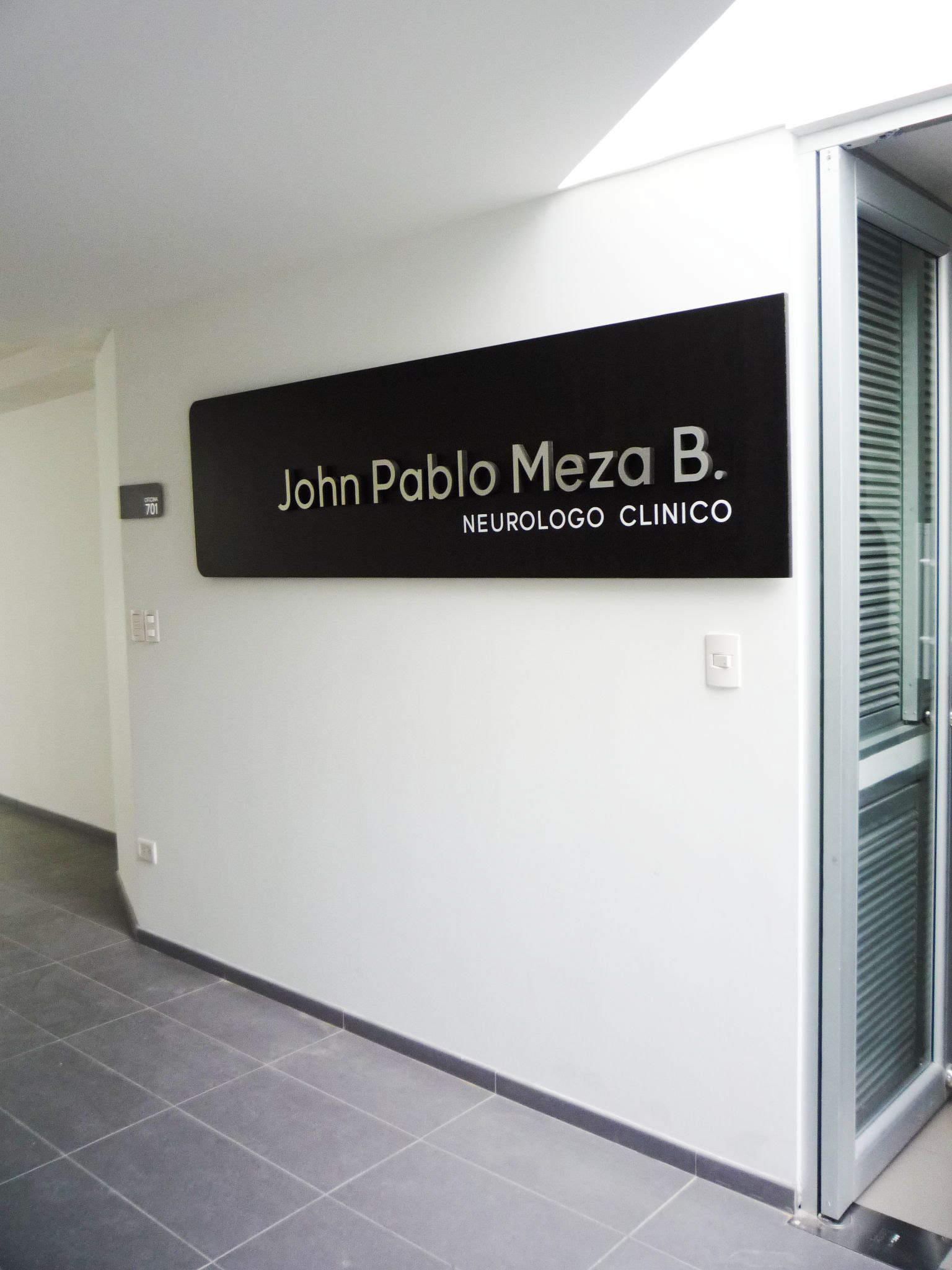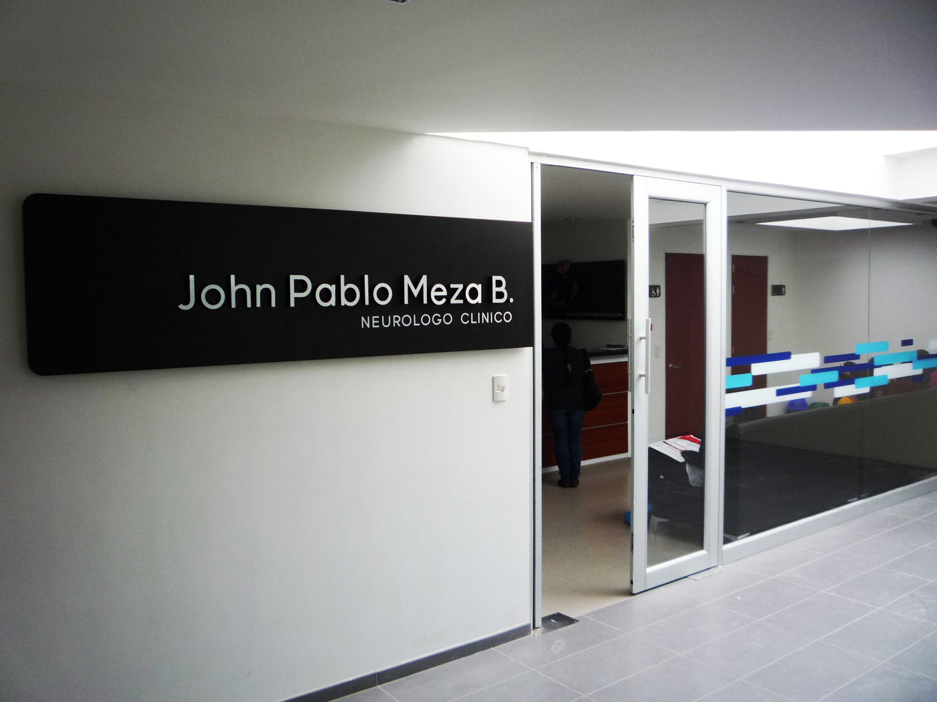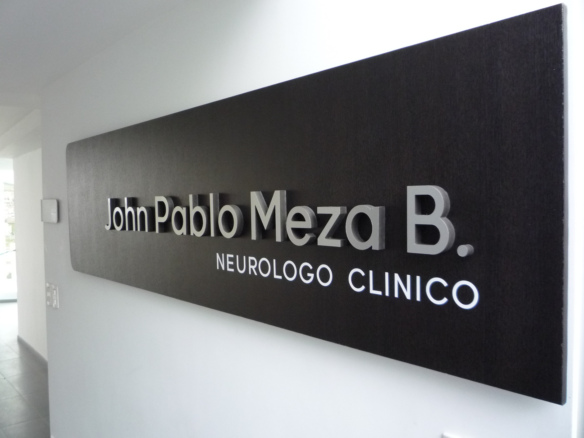 Identificación Consultorio John Pablo Meza B. Neurologo Clínico / Aviso de gran formato fachada / Aviso recepción / Cenefa decorativa ventaneria fachada / Señalización general