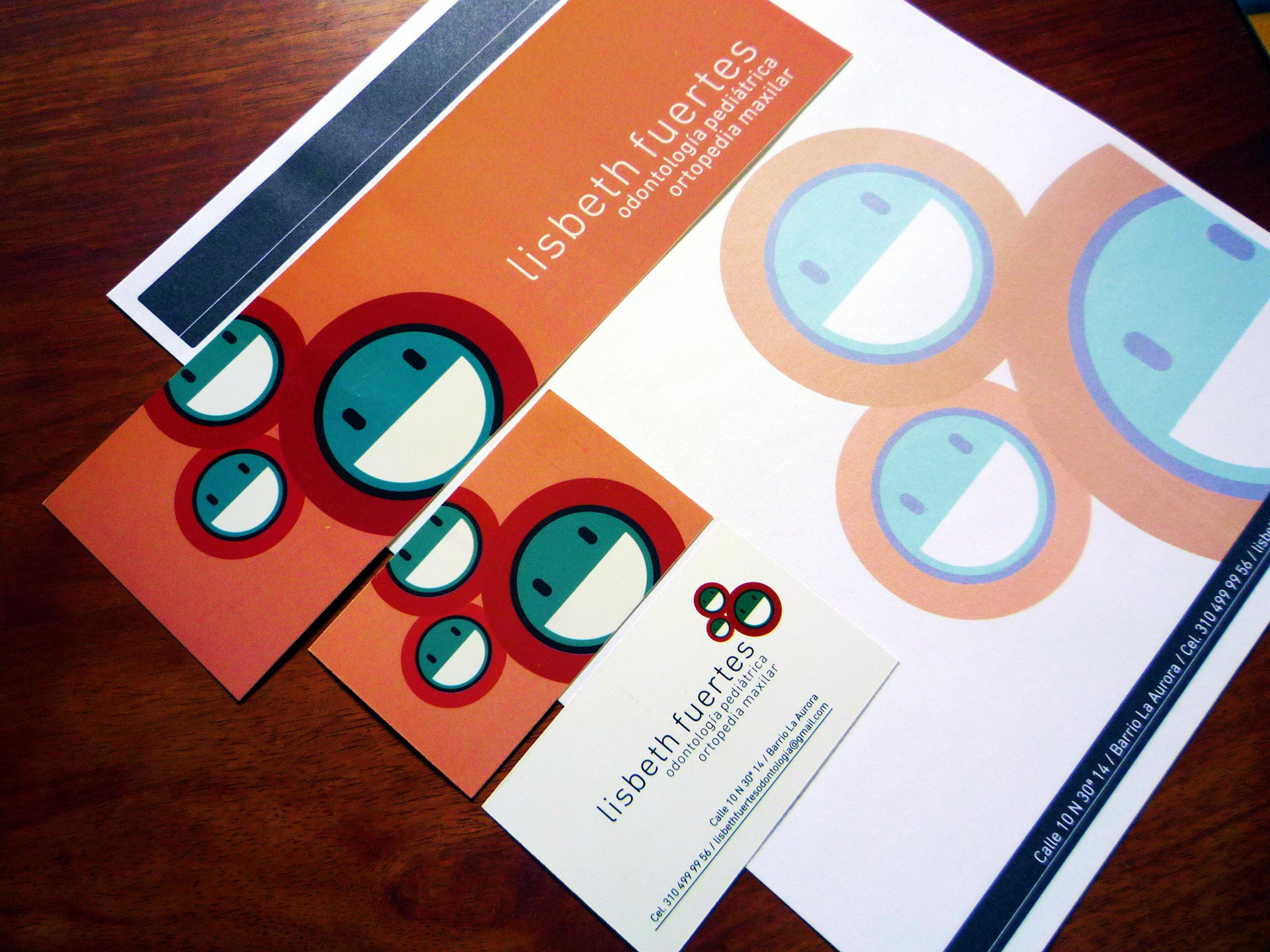Proyecto de Desarrollo de Imagen Gráfica Lisbeth Fuertes odontología especializada / Aplicaciones gráficas en papelería básica y papelería odontológica / Diseño y elaboración aviso de gran formato para fachada e interior / Cenefas para privacidad consultorios