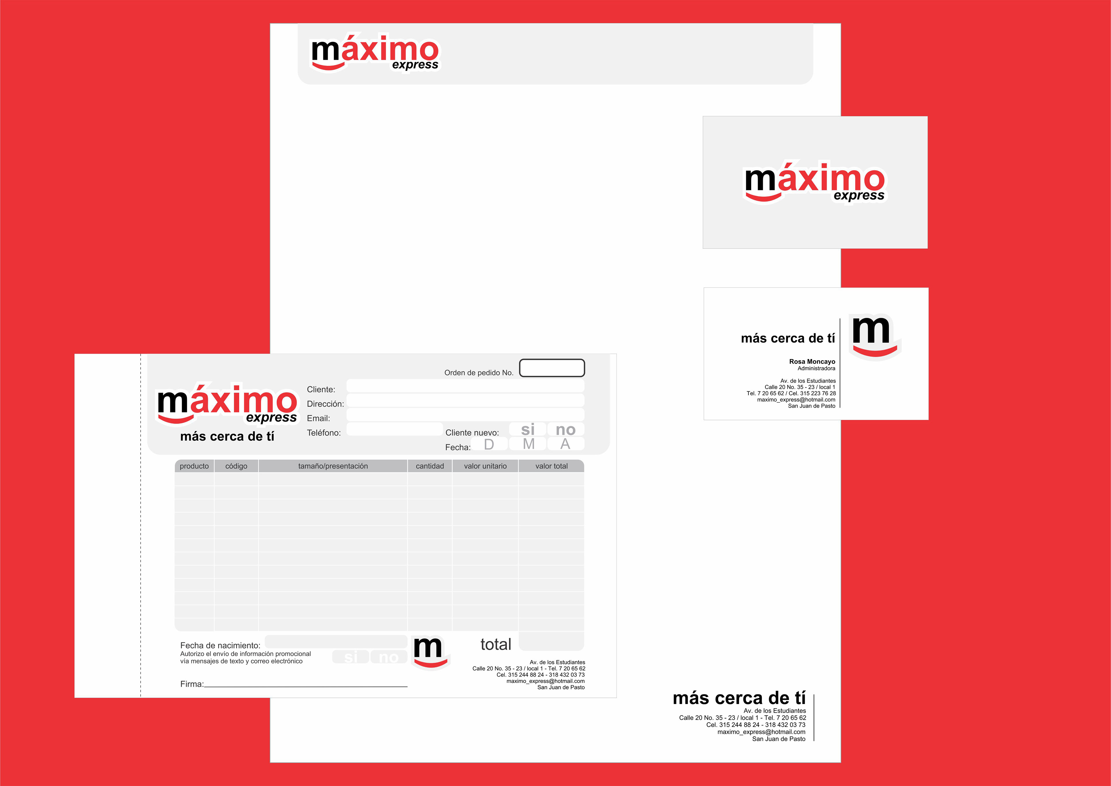 Proyecto de Desarrollo de Imagen Gráfica máximo express / Aplicaciones gráficas en papelería básica y papelería promocional / Diseño y elaboración aviso de gran formato para fachada / Señalización informativa