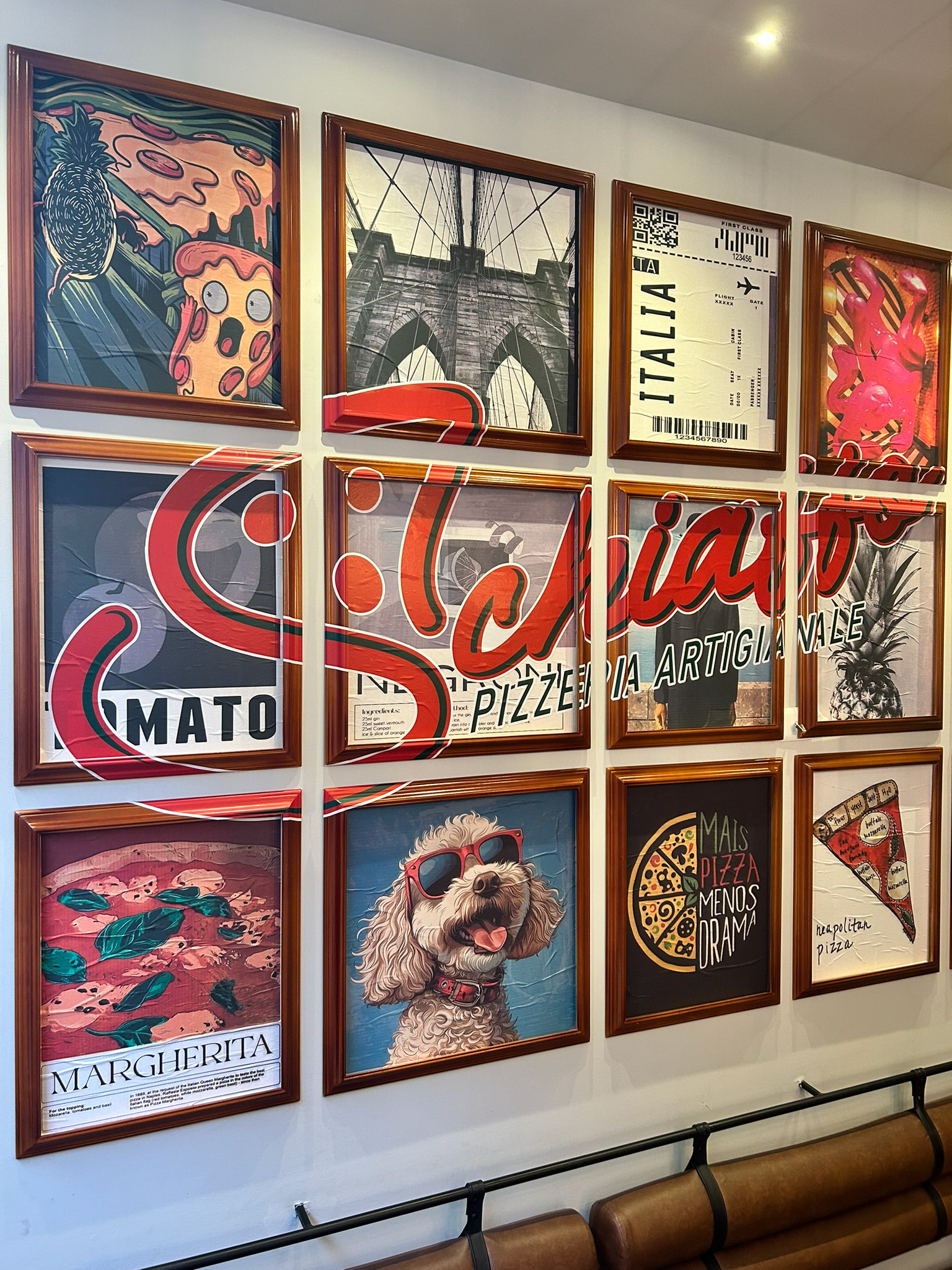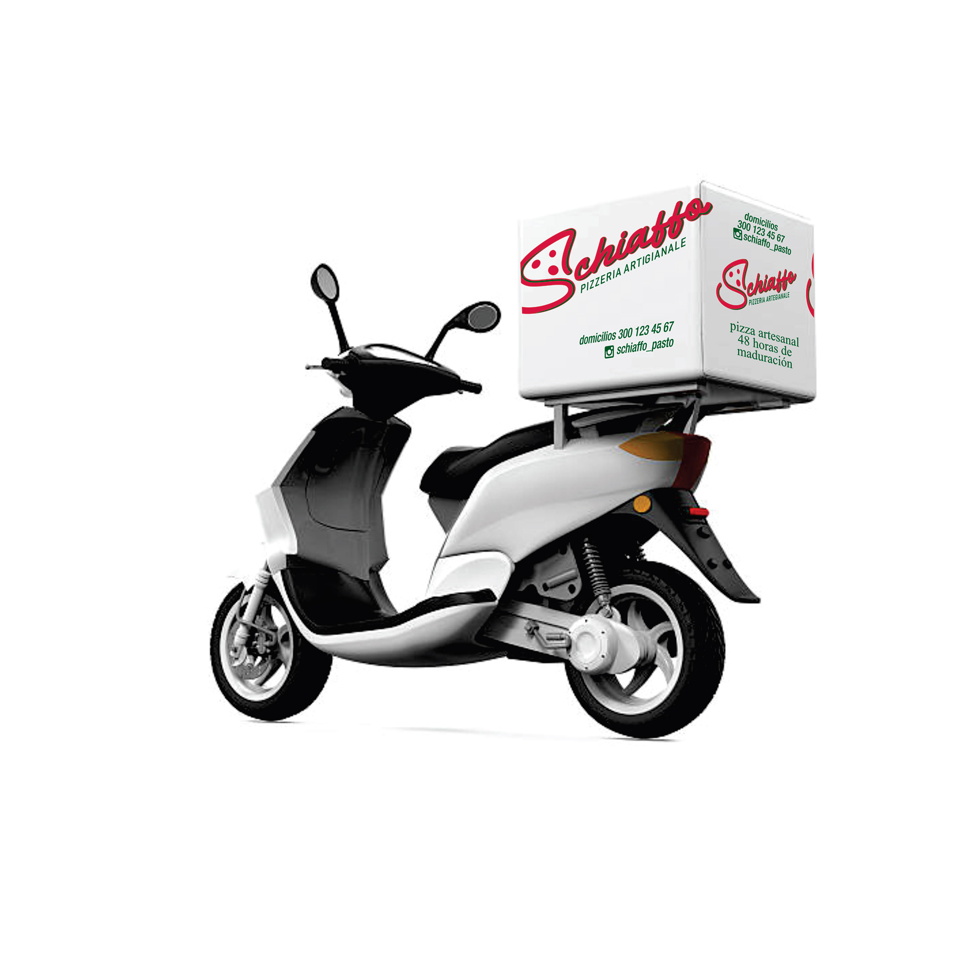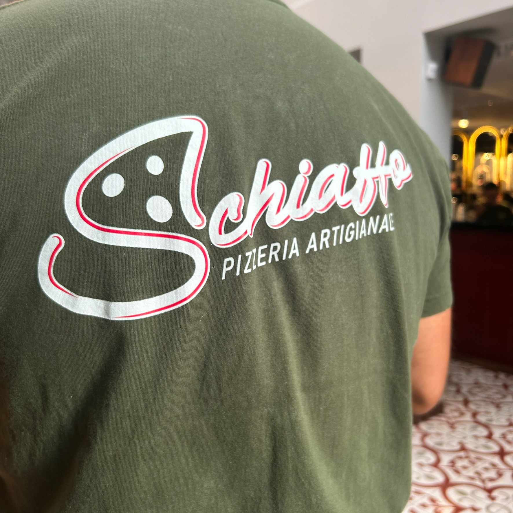 Proyecto desarrollo de Identidad Schiaffo Pizzeria Artigianale / Aplicaciones varias en papelería, uniformes y empaque / Aviso fachada / Cliente: Schiaffo Pizzeria Artigianale