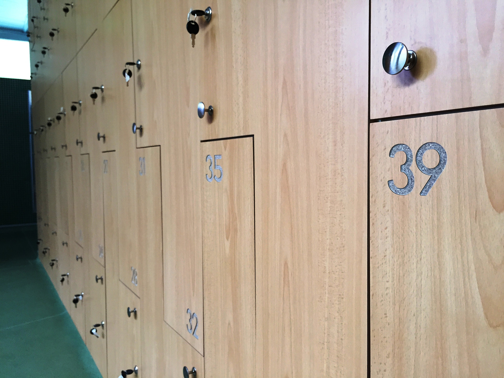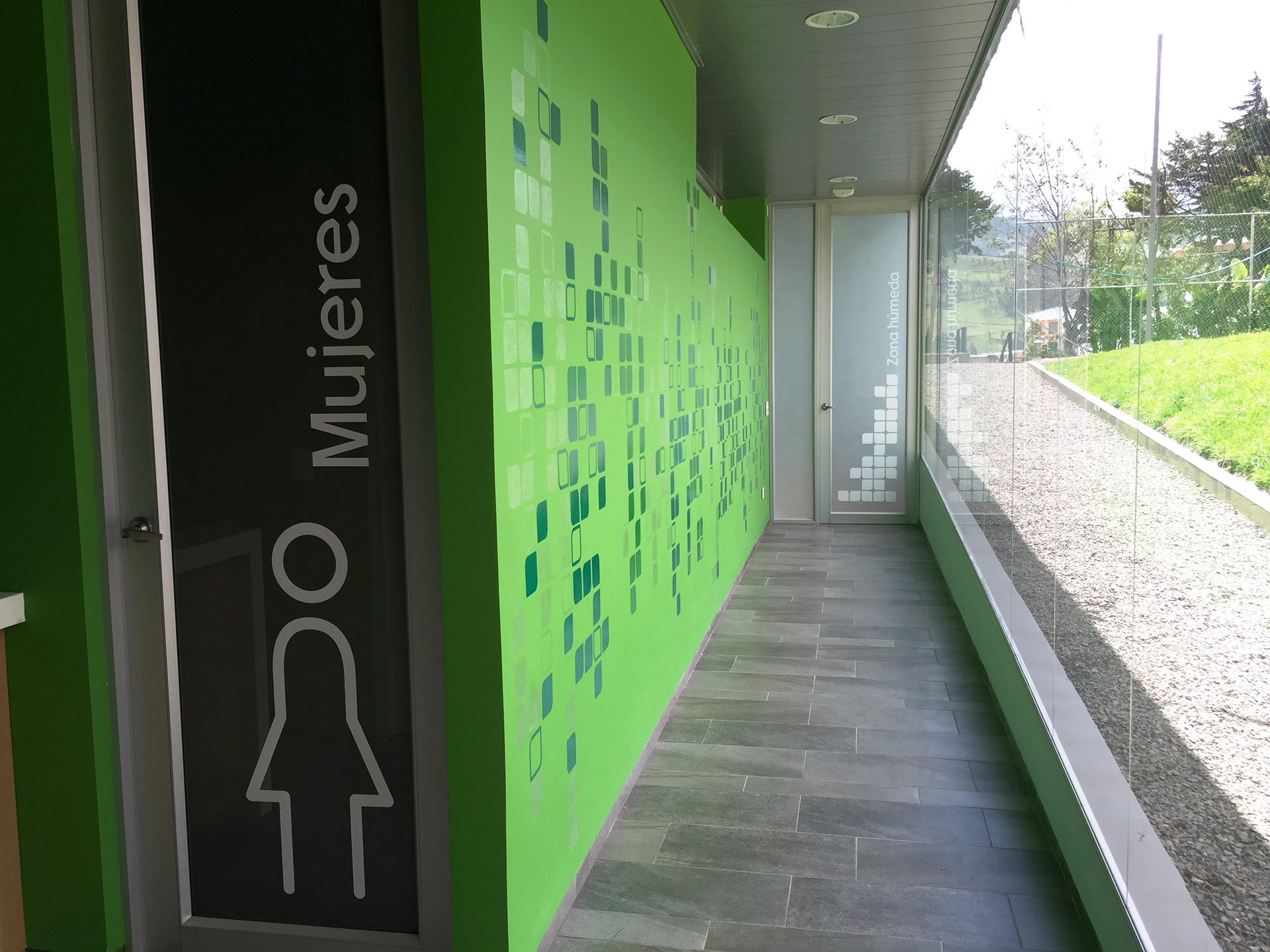 Diseño, elaboración y montaje de decoración / ambientación gráfica sobre muros y vidrieras / diseño, elaboración y montaje de señalética zona húmeda / marcación CNC de lockers / diseño, elaboración CNC y montaje rejillas de ventilación en aluminio compuesto (diseño arquitectónico Ortega Gomez )